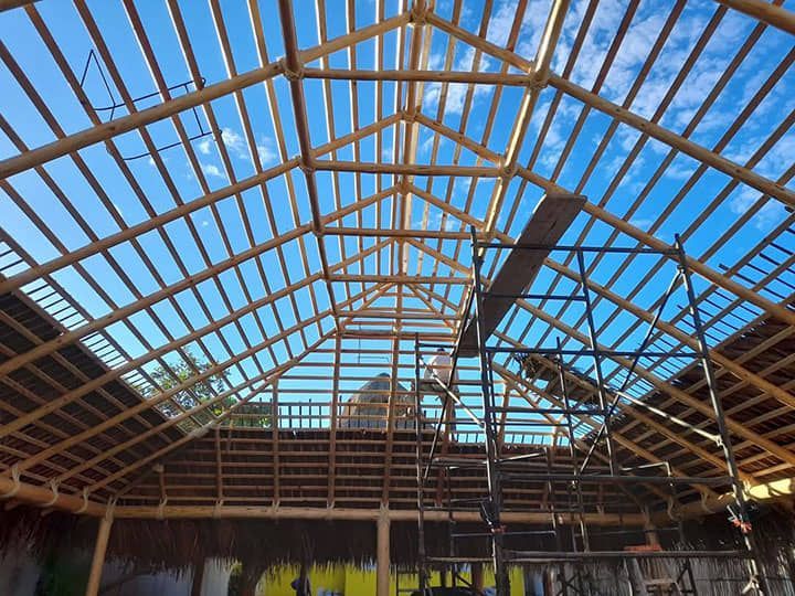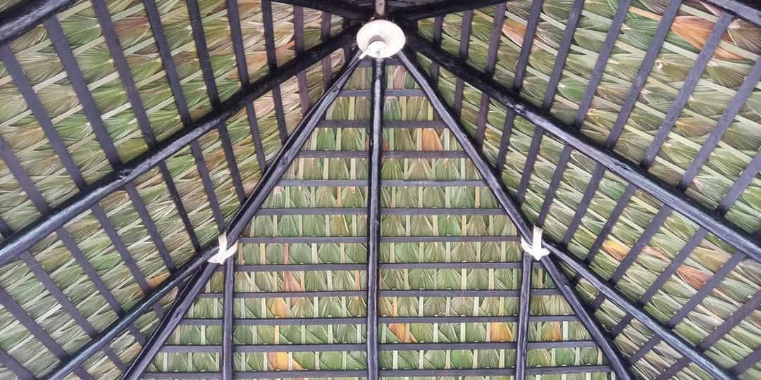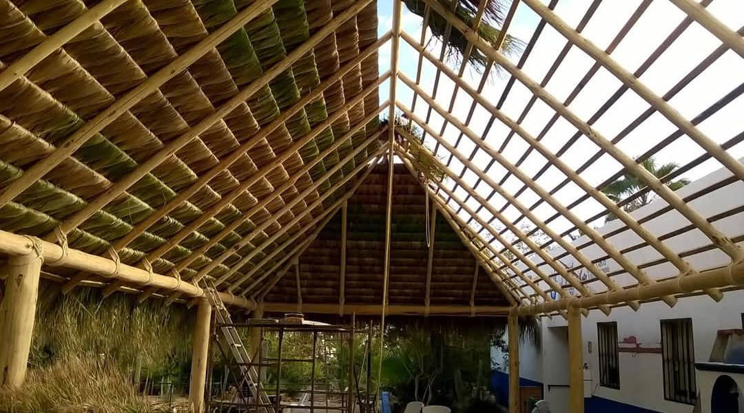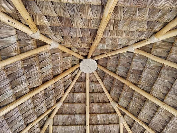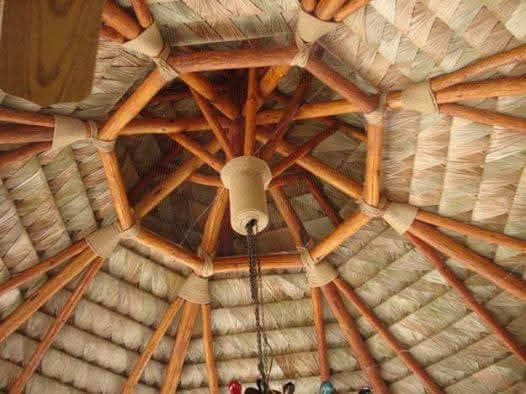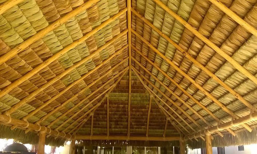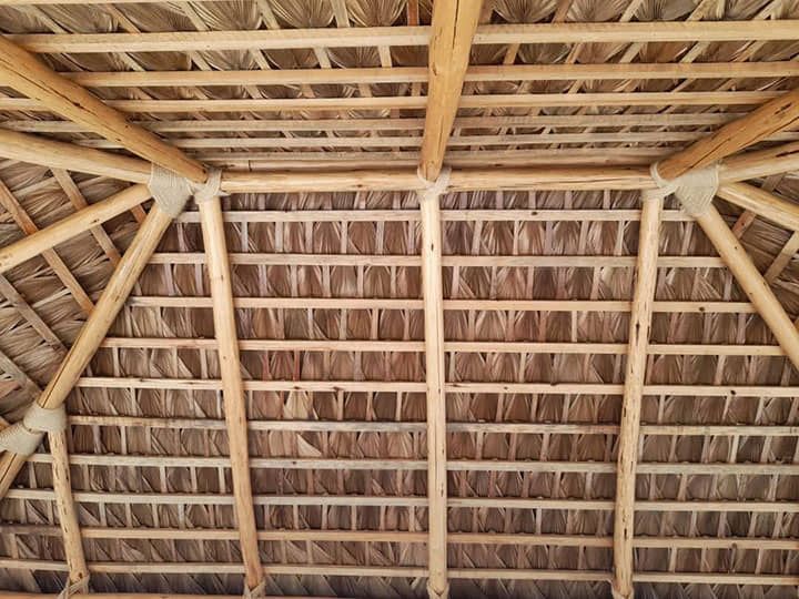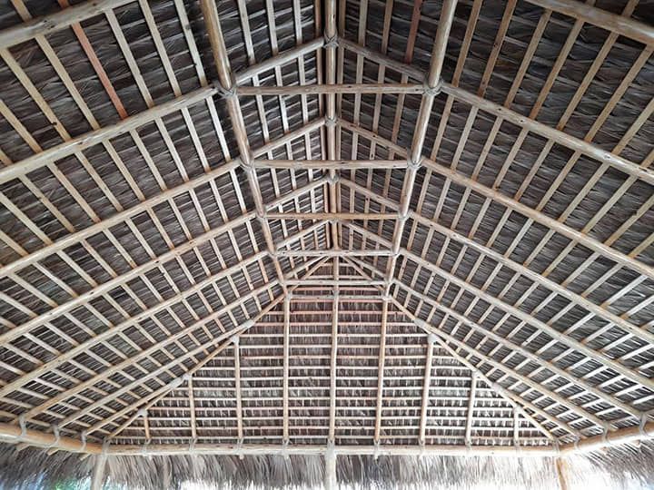 morillos, vigas deck, vara de palo de arco, otate y carrizo, combinados con técnicas artesanales y soluciones de