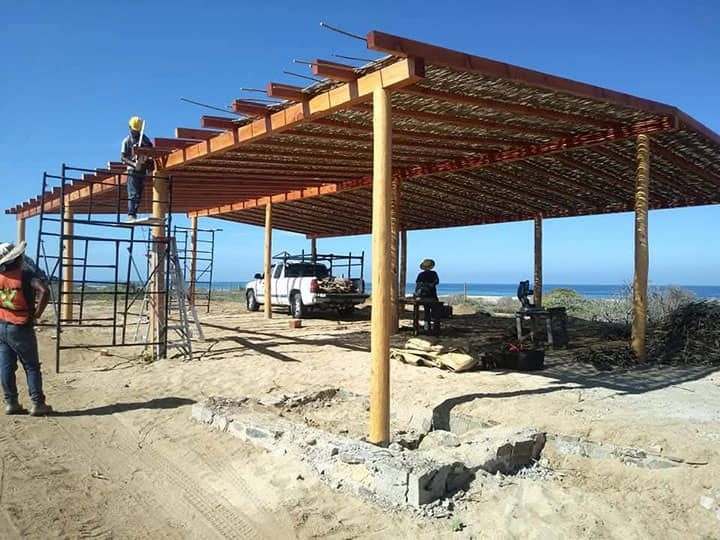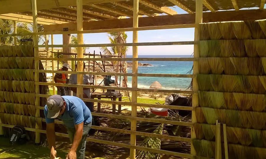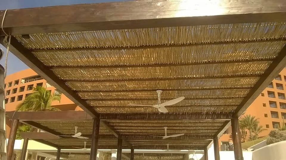 construcción de pérgolas en Los Cabos, utilizando materiales naturales resistentes al clima como